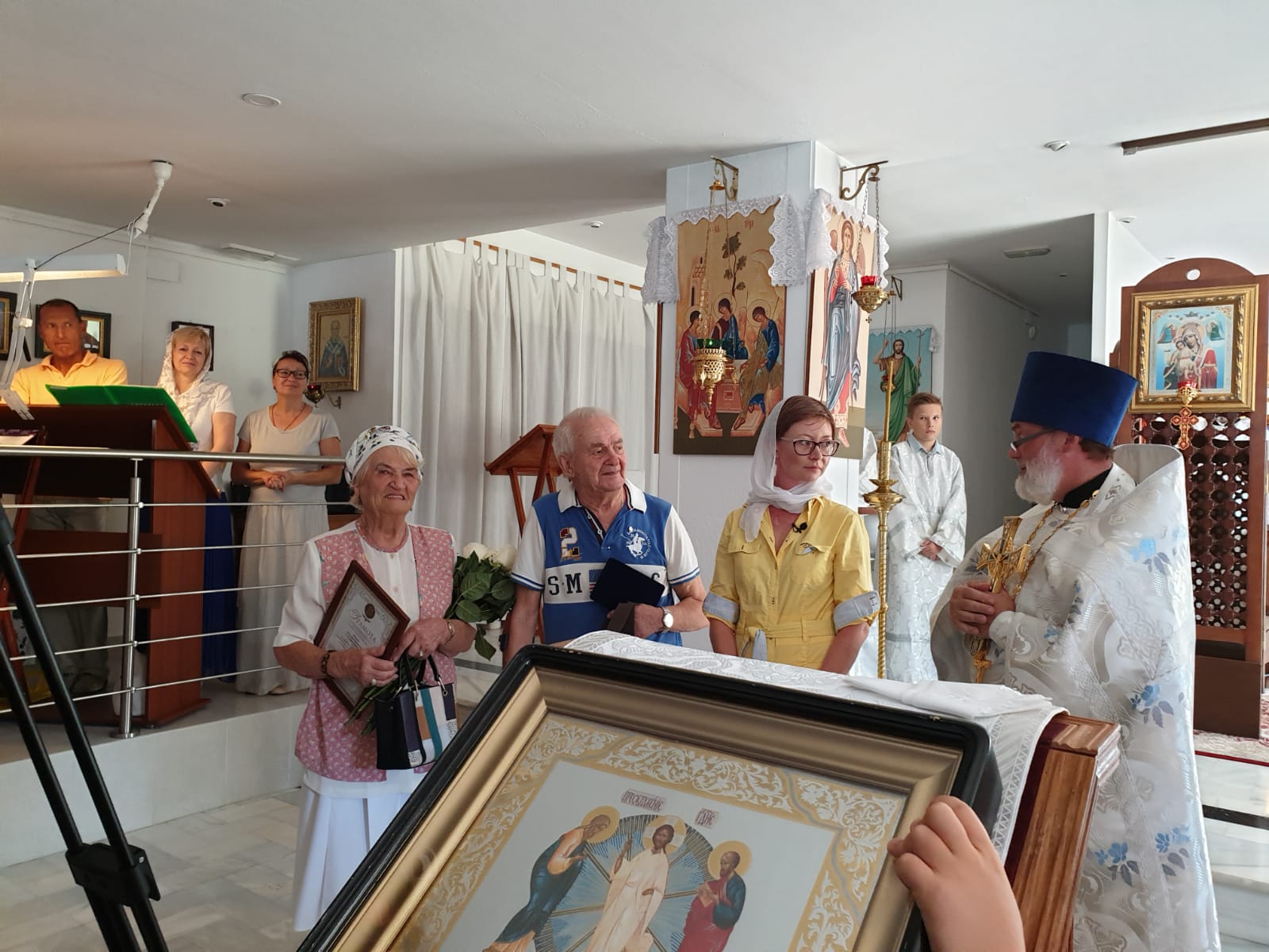 В нашем приходе состоялось торжественное чествование семейной пары, которая прожила в браке 64 года . Почетная грамота за подписью Руководителя представительства Россотрудничества в Испании Эдуарда Соколова и памятный знак были вручены семье Ивченко Николаю Степановичу и Ангелине Анатольевне. Как отметила награжденная пара, прожить долгую и счастливую семейную жизнь, достойно воспитать детей и бережно хранить традиции им помогает любовь, уважение и бережное отношение друг к другу.Настоятель храма протоиерей Димитрий так же пожелал им крепкого здоровья, сил и помощи Божией во всем.Хор и прихожане храма пропели им Многая и благая лета!